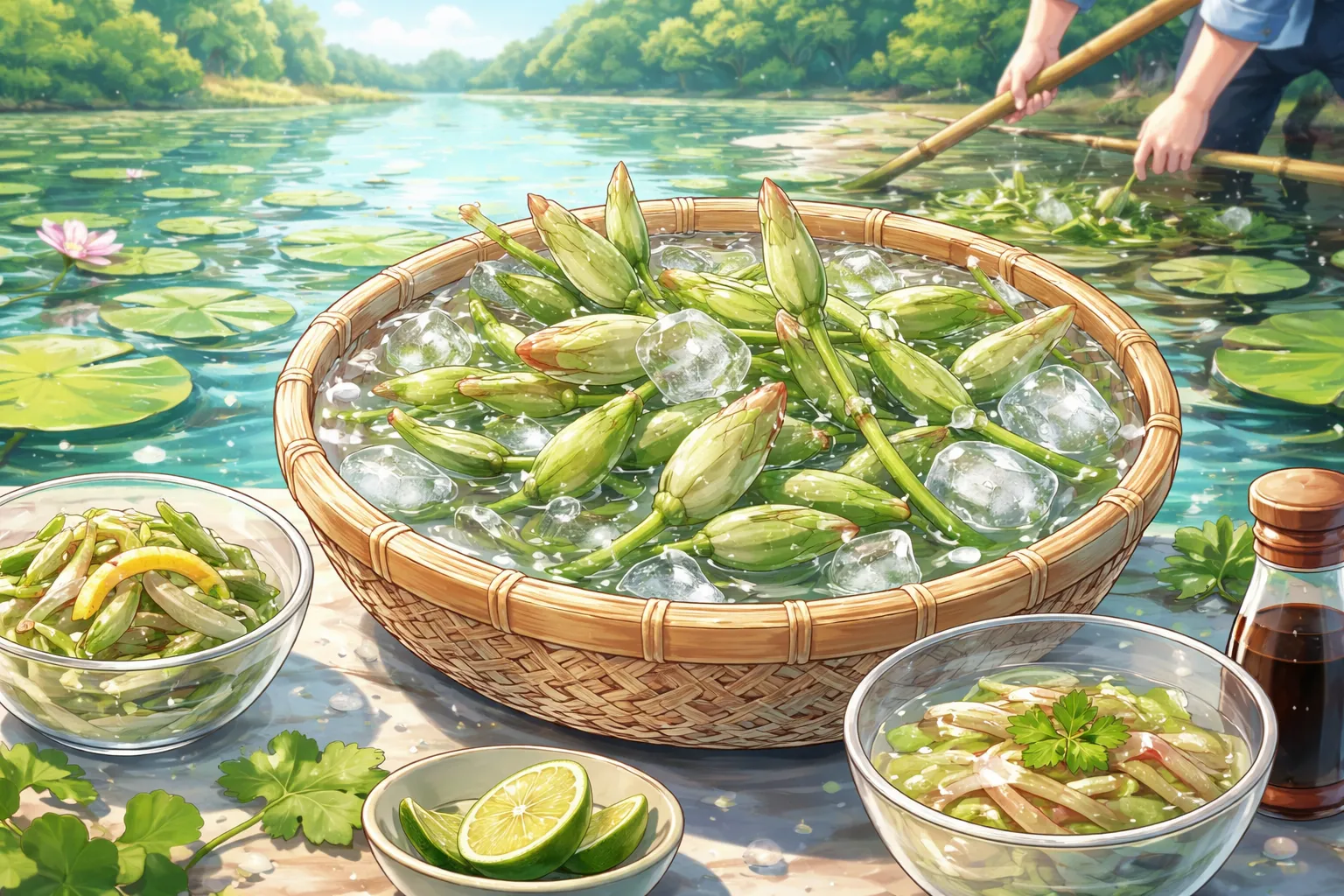 ただし、じゅんさいは通年で安定して流通する食材ではなく、特に生じゅんさいは旬(5〜8月頃)に大きく左右されます。