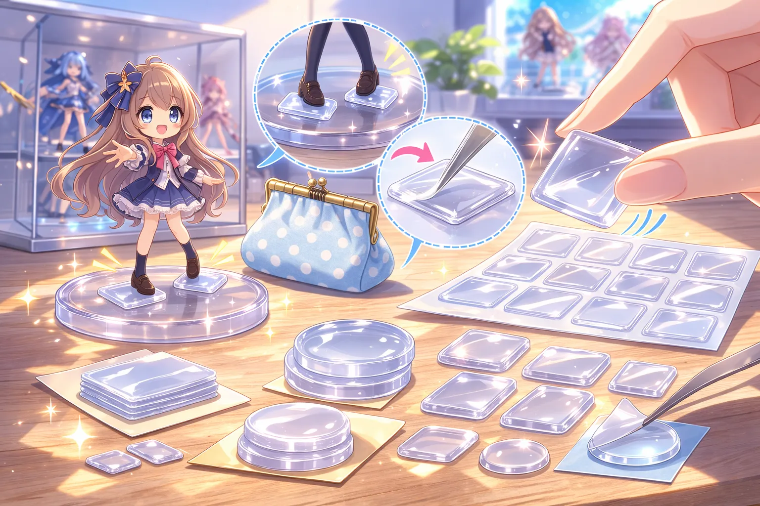 小型〜中型フィギュアの足裏に貼りやすいサイズで、透明度が高く目立ちにくいのが特徴です。